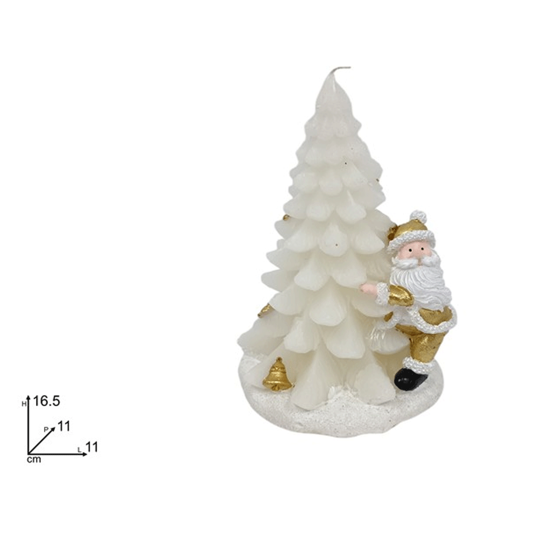 Candela Albero Bianco Con Babbo Natale 16.5 Cm