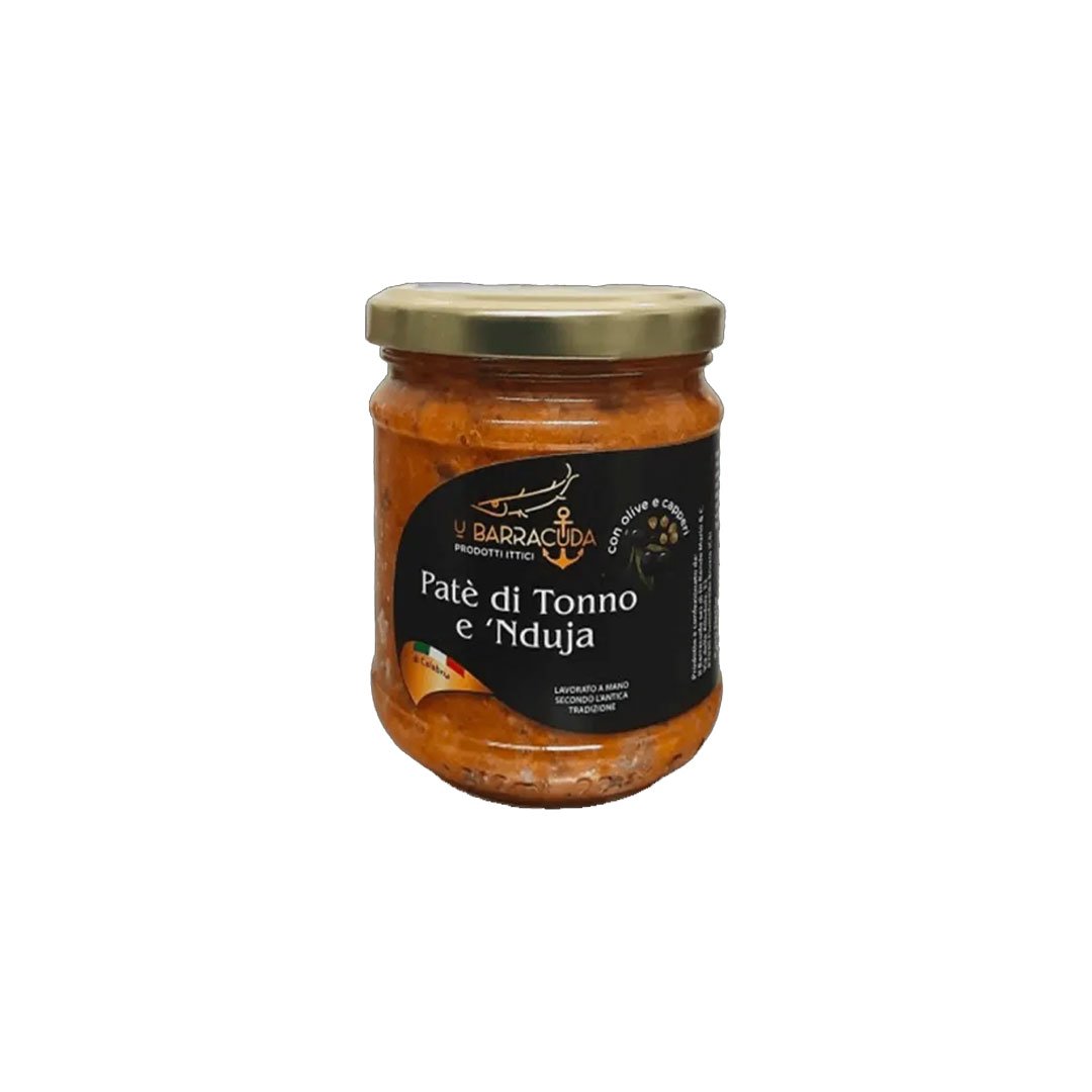Ingredienti: Thunnus alalunga FAO 37.2.2, nduja di spilinga, olive nere, capperi, olio extra vergine d’oliva 20%, olio di semi 80%, sale