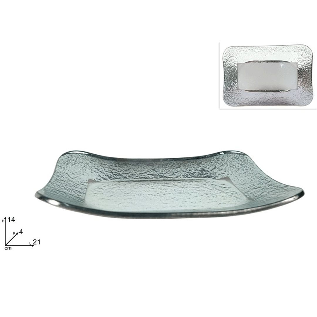 Piattino Vetro Rettangolare Bordo Silver 21x14cm