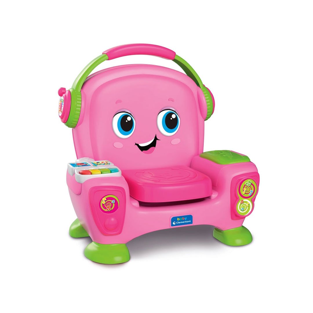 Una simpatica poltroncina multiattività e interattiva a tema musica, per far divertire i più piccoli a tutto ritmo! Per giocare, riposare, suonare e cantare, imparando le parole, numeri e colori. E’ dotata di una maraca, una pianola e di una consolle con pulsanti touch e uno schermo luminoso. Lo speciale sensore della seduta riconosce quando il bambino si siede e propone musiche coinvolgenti e balletti interattivi, invitandolo a giocare in movimento. La Poltroncina Canta Suona e Balla ha tantissime funzioni per interagire con suoni, musiche, canzoni e parole, per giocare, suonare e sviluppare la manualità. La funzione “Balla” propone canzoncine interattive, come il “ballo della poltroncina”, che invita il bambino ad alzarsi, ballare intorno alla sedia e sedersi prima che finisca il conto alla rovescia. La funzione “Suona” guida il bambino nell’utilizzo della pianola usando i colori dei tasti, per un primo approccio con la musica.