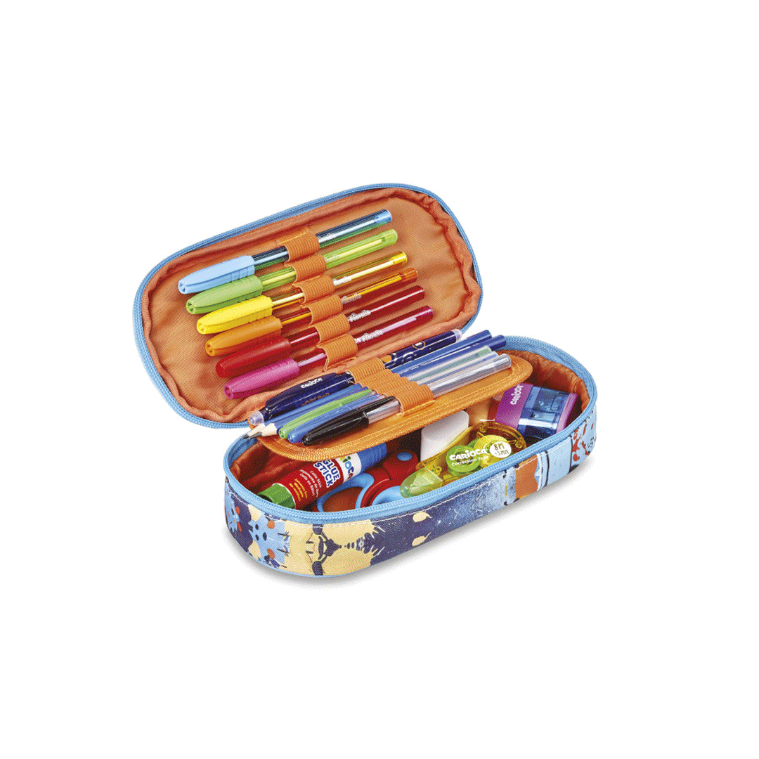 • Dotato di uno spazioso vano porta oggetti e due reparti porta Penne, con elastici