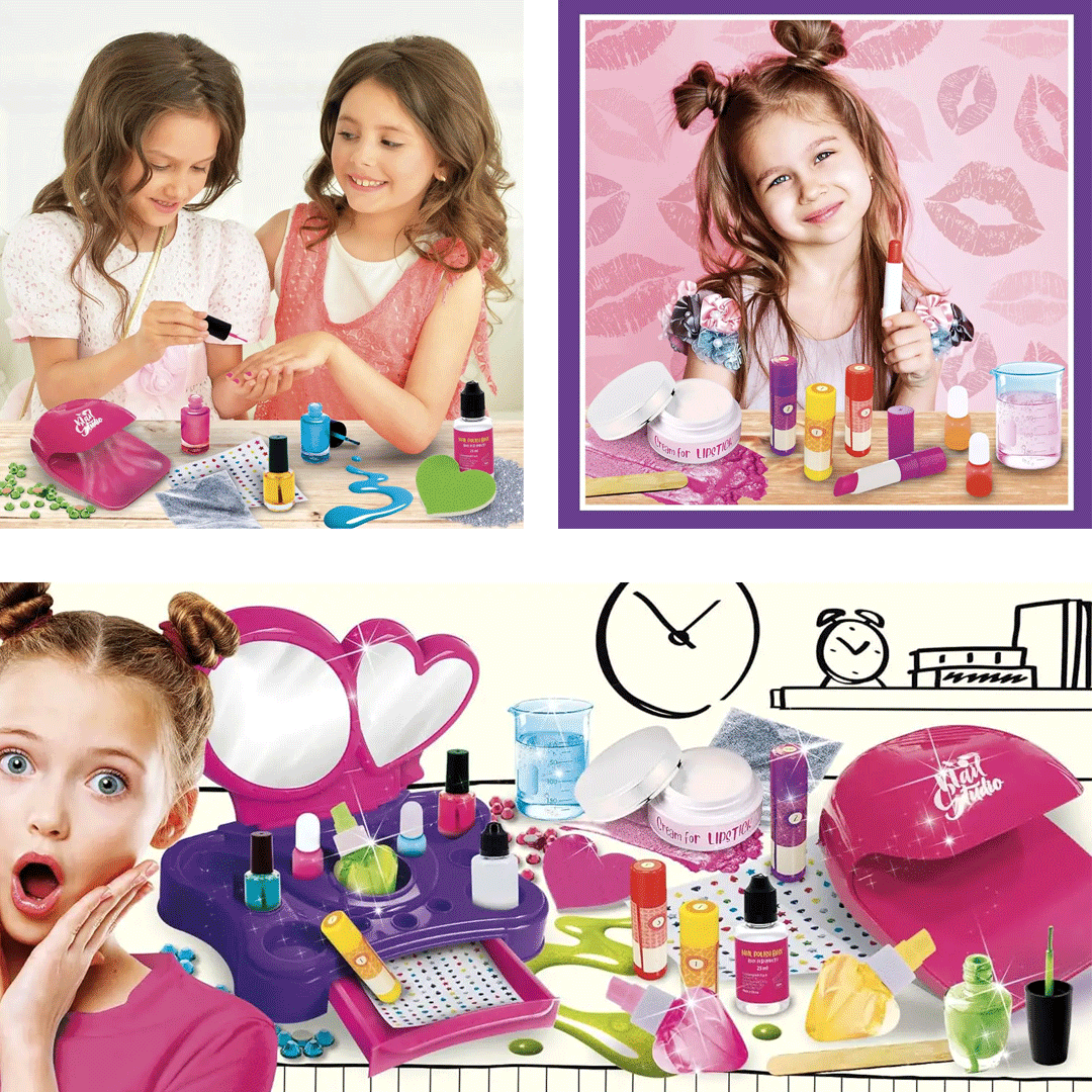 • Esperienze nella Scienza Cosmetica: Esplora e sperimenta con la creazione di prodotti cosmetici come smalti per unghie, rossetti e profumi.