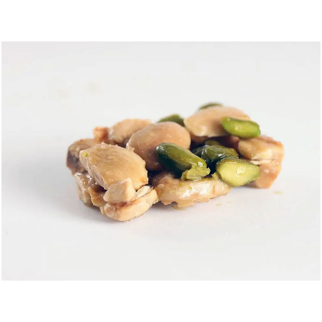 Ingredienti: Mandorle 61%, pistacchi 26% miele, zucchero.